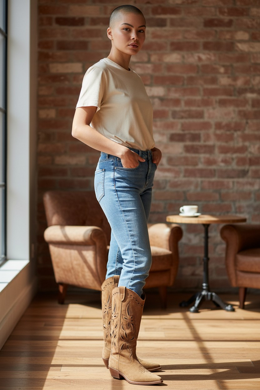 Stivale Texano Traforato Scamosciato Camel